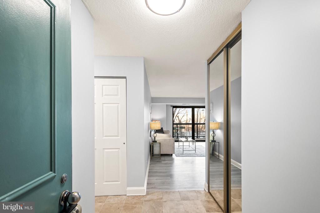 Absolutelly stunning unit with views of trees, nature...sparkling clean...gorgeous cherry colored kitchen cabinets...granite counter tops in kitchen...freshly painted...new carpet and pad in bedroom with walk-in closet...spacious balcony...updated heating and a/c system...lovingly maintained...condo fee includes: heat, cooling, water, sewer, electric, trash, and fabulous onsite amenities such as: 24 hour security, gated community, picnic areas, party rooms, party gazebos, indoor/outdoor swimming pools, hot tub, sauna, fitness center, jogging trails, beauty salon, new pickle ball courts, racquet ball courts, parking, library stocked with best seller books, fully stocked convenience store, free shuttle to metro, separate storage unit...PLUS...new onsite restaurant in the process of being remodelled...community also offers fun activities like bus trips, yoga classes, water aerobics...one year Super Home Warranty provided to new buyer(s) at settlement....must see to appreciate the beauty and value!!!